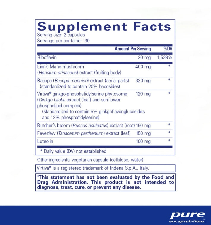 Brain reset is an herbal formula with several key extracts known to support the brain and nervous system, including Lion's Mane, Bacopa, and Gingko Biloba. The formula also has a circulatory support system with Butcher's Broom, Feverfew, and other nutrients to facilitate the body's utilization of the herbs.