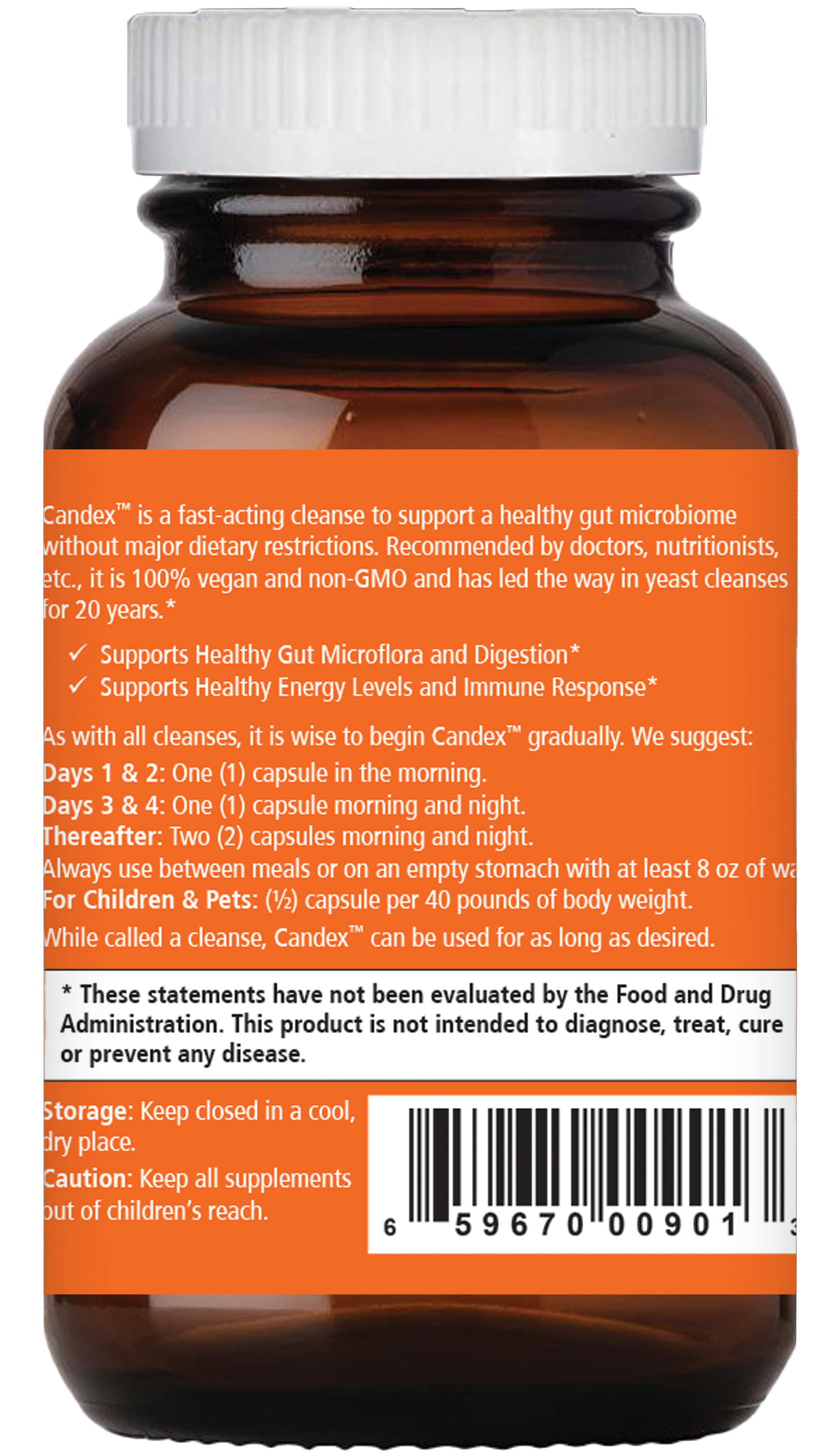 Candex™ is a yeast management supplement clinically proven to be a safe and effective Candida treatment. With this remarkable formula, you will find: beneficial results within 10 days, have little to no 'healing crisis' (from yeast 'die-off'), or dietary restrictions. Candex digests cell walls and biofilm of yeasts and is safe for children and pets.