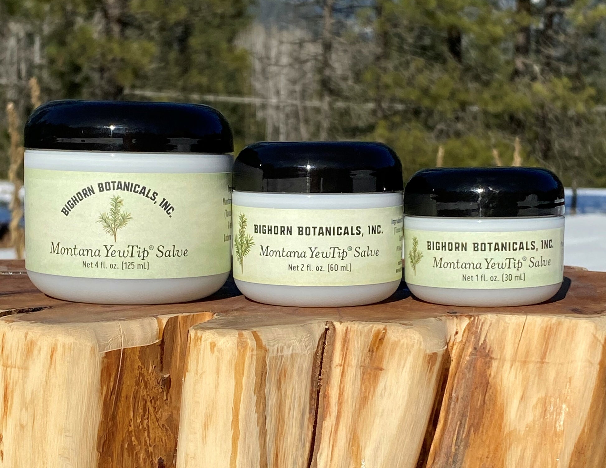 Montana YewTip Salve is a proprietary blend of Montana YewTip Oil and Beeswax. Soothing to the skin. Apply a dab of salve to target area, cover with bandage or gauze for consistent direct contact. Wash, sanitize and reapply daily.