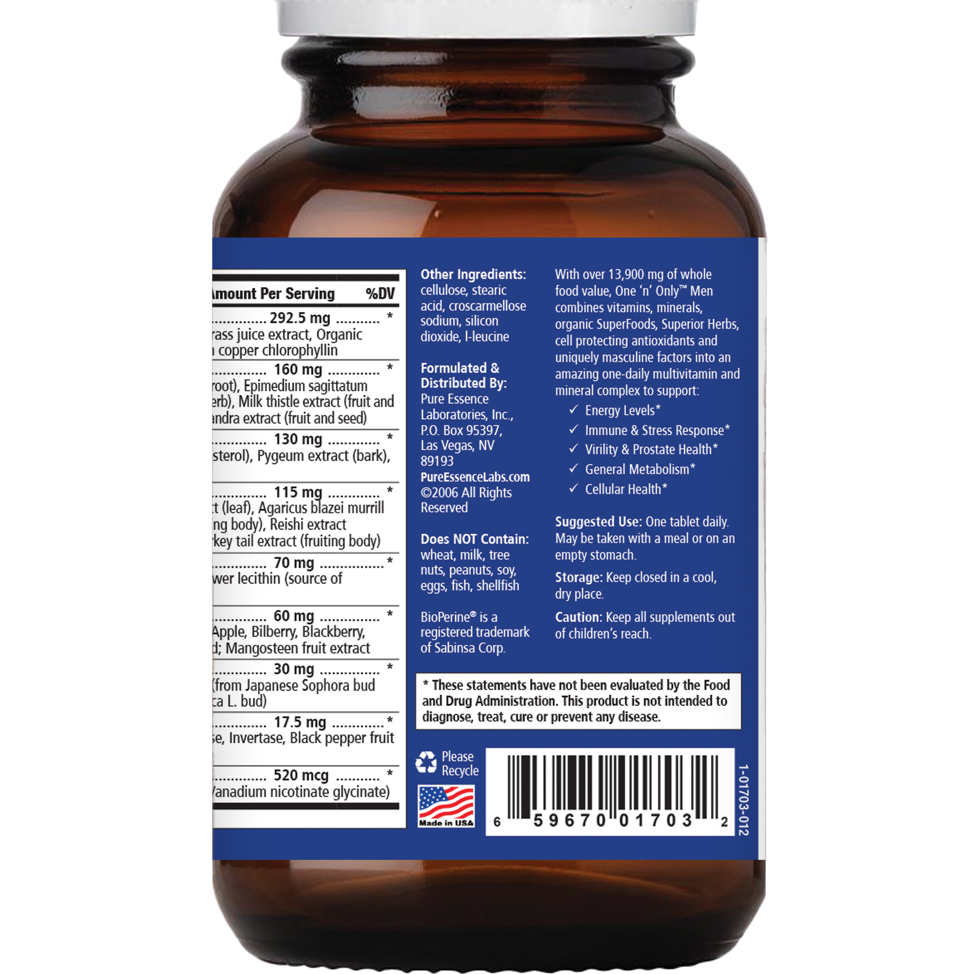 With over 23,000 mg of whole food value, One ‘n’ Only Men combines vitamins, minerals, organic Superfoods, Superior Tonic Herbs, cell protecting antioxidants and uniquely masculine factors into an amazing one-daily multivitamin and mineral complex to support: Energy Levels, Immune & Stress Response, Virility & Prostate Health, General Metabolism, and Cellular Health.