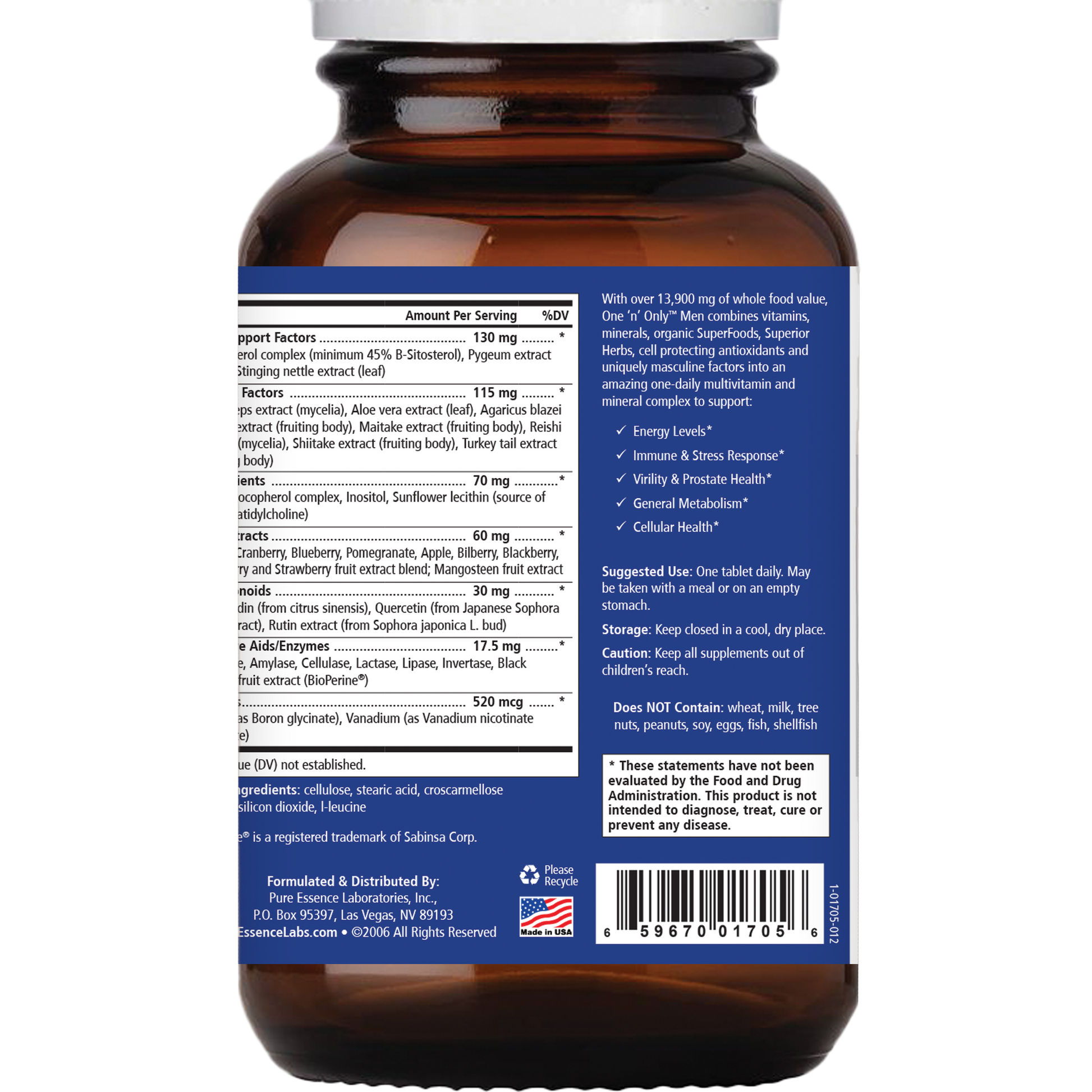 With over 23,000 mg of whole food value, One ‘n’ Only Men combines vitamins, minerals, organic Superfoods, Superior Herbs, cell protecting antioxidants and uniquely masculine factors into an amazing one-daily multivitamin and mineral complex to support: Energy Levels, Immune & Stress Response, Virility & Prostate Health, General Metabolism, and Cellular Health.