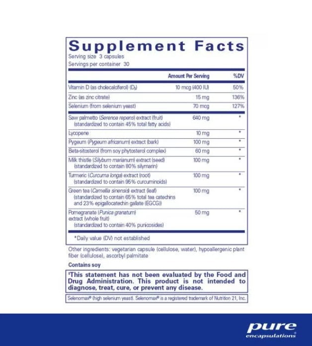 Saw Palmetto has been used for decades in various countries to support men's prostate health. Its benefits are enhanced in combination with pygeum and beta sitosterol, and this formula also includes Vitamin D, zinc, and a comprehensive group of herbal extracts designed to optimize prostate health.