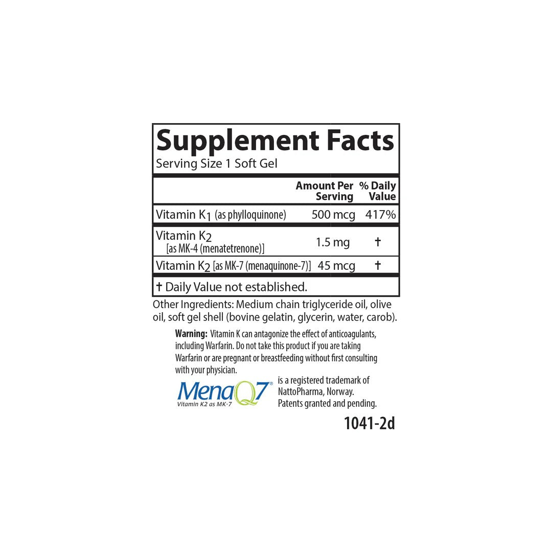 Provides vitamin K1, K2 as MK-4, and K2 as MK-7