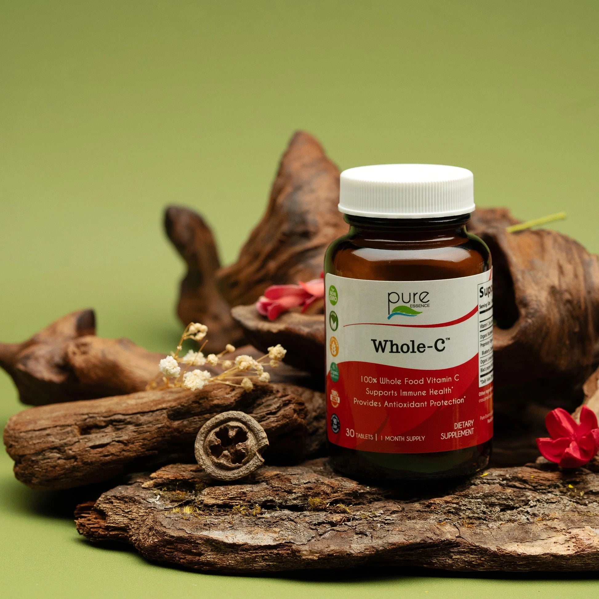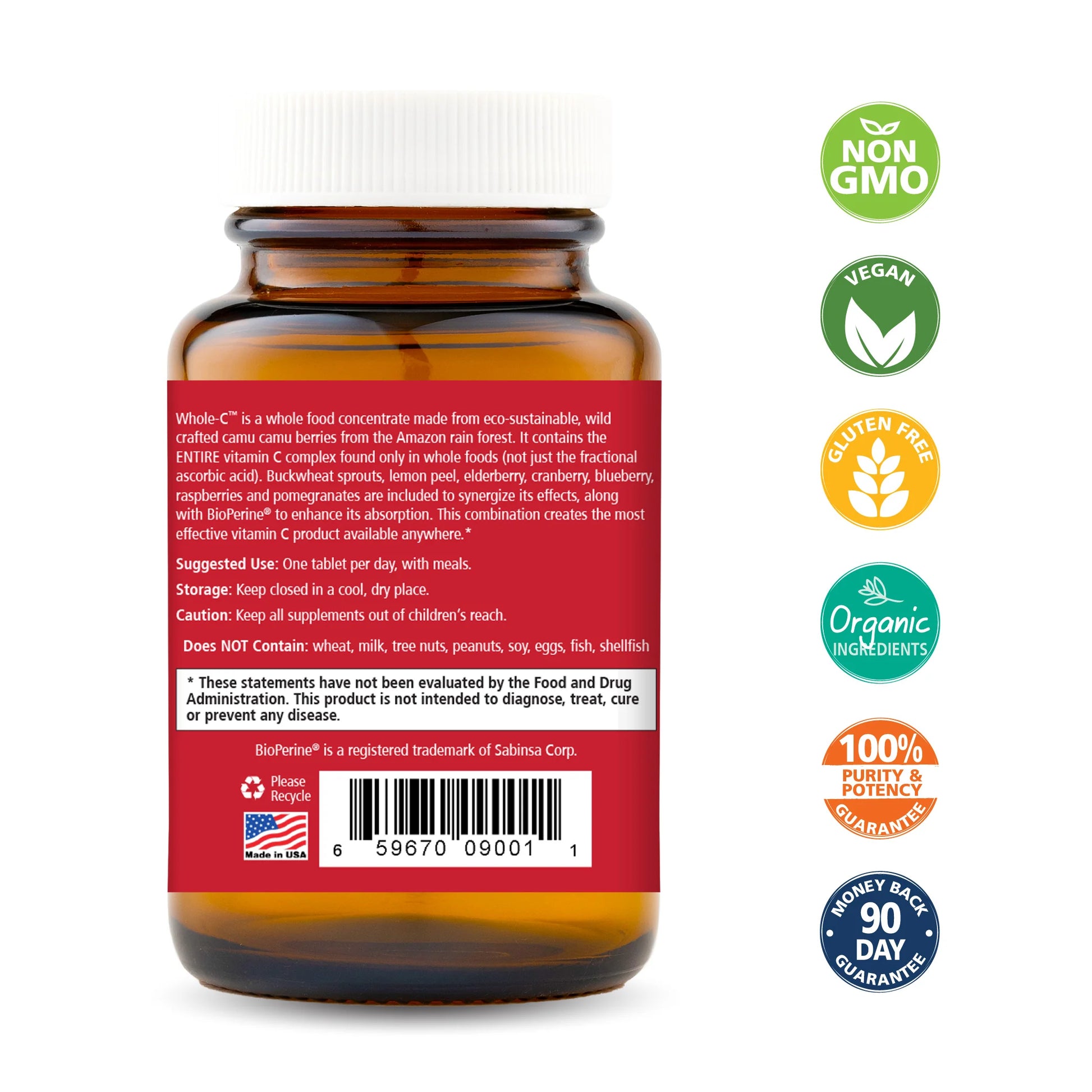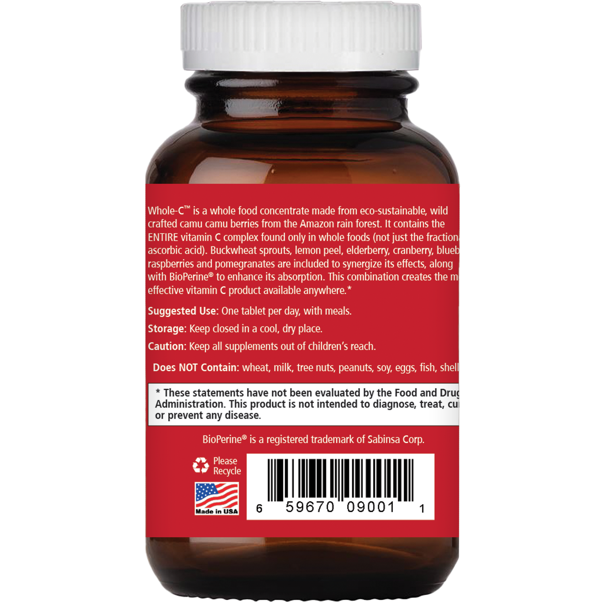 Whole-C is a whole food concentrate made from eco-sustainable, wildcrafted camu camu berries from the Amazon rain forest. It contains the ENTIRE vitamin C complex found only in whole foods (not just the fractional ascorbic acid). Buckwheat sprouts, lemon peel, elderberry, cranberry, blueberry, raspberries, and pomegranates are included to synergize the effects, along with BioPerine® to enhance absorption. Together, these ingredients Support Immune Health and Provide Antioxidant Protection.